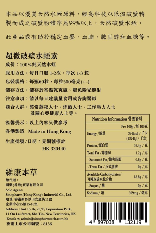 重 量: 1樽60粒, 1粒約500mg (+/-)